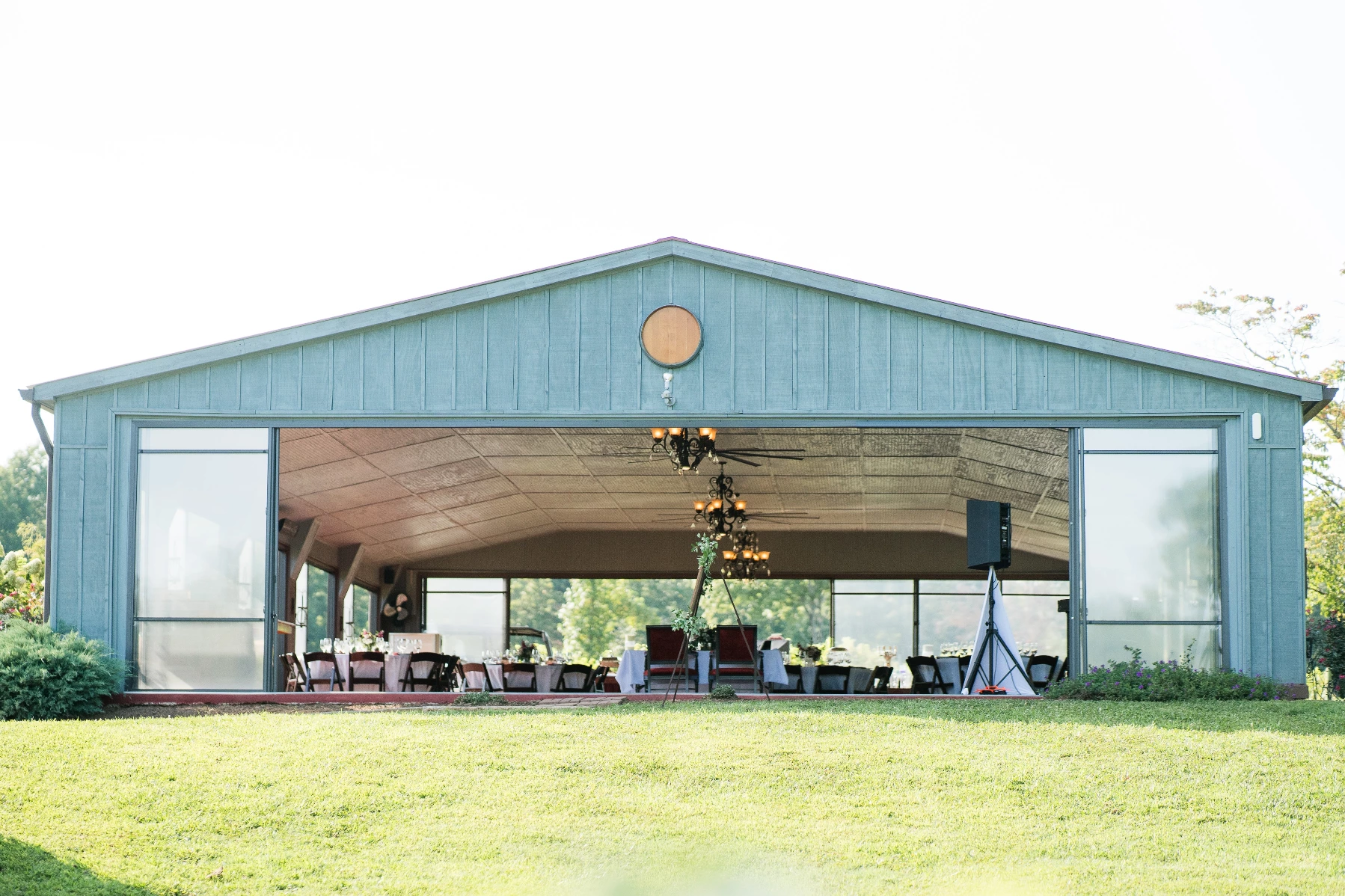 - 40′ by 70′ Stunning Pavilion: Accommodates up to 180 guests with a picturesque view.